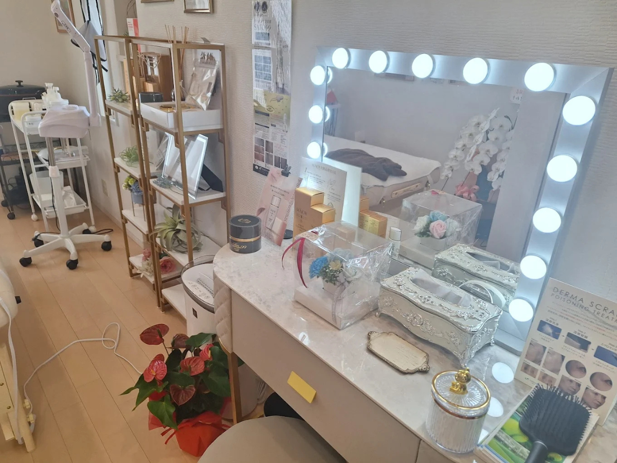 美容品を使用クレンジングから美容液、クリームまで敏感肌に配慮した美容アイテムを使用しています。オーナー自身が敏感肌だからこそ、試して選び抜いたララピーリングなど、安心して使えるものだけを取り入れています。